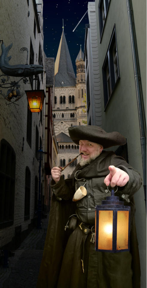 Wer gerne in das Mittelalter eintauchen  möchte, der findet bei mir einen  Nachtwächter Rundgang oder erlebt das  kriminelle Köln als Henker, Hexe Tod und  Teufel Tour.